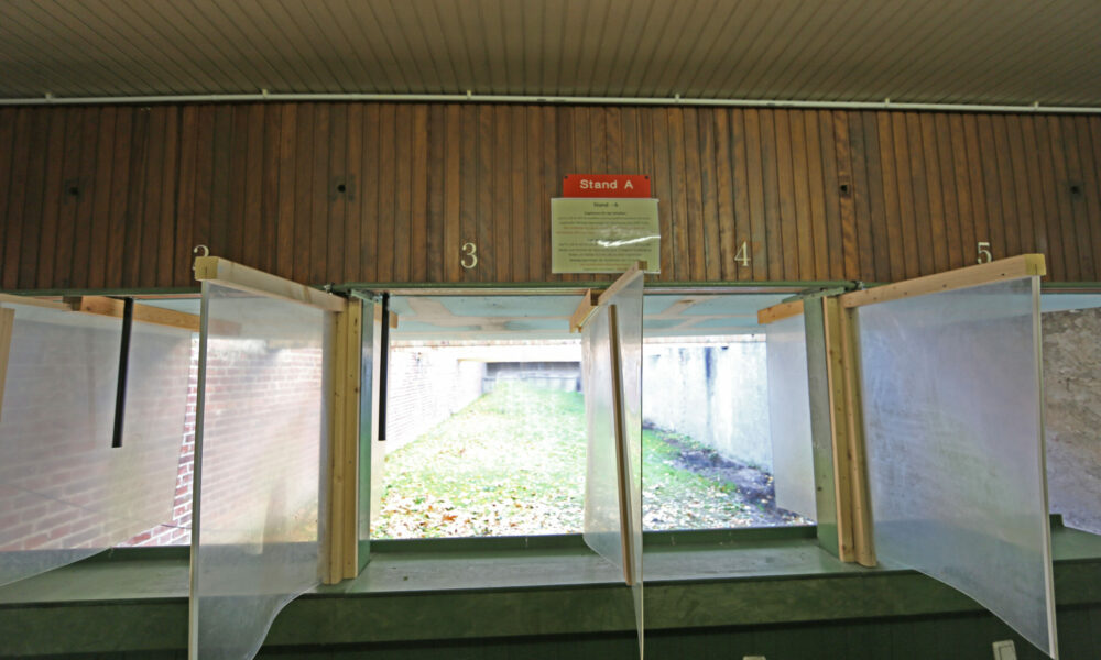 Unser Schießstand liegt im schönen Ortsteil Flingern. Er ist Teil einer Sportanlage mit Fußballplatz und Tennisplatz. Wie Sie auf den folgenden Bilder sehen können ist es ein offener Schießstand mit sehr viel Licht und viel Frischluft. So ist das auch mit Sommer- und Winterzeit. Im Sommer ist es wunderschön draußen zu schießen und im Winter kostet es etwas Überwindung, doch wir lassen uns auch in der kalten Jahreszeit nicht davon abhalten unserem Sport nachzugehen.